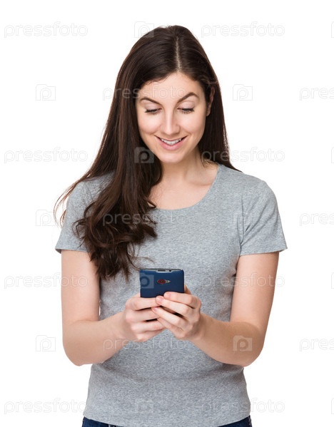 Женщина читает на мобильном телефоне