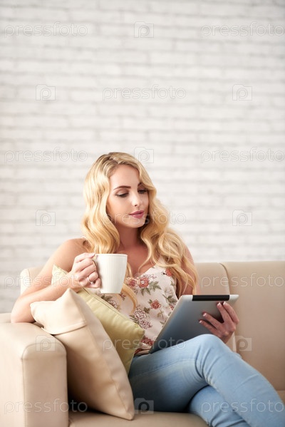 Красивая женщина, читающая дома