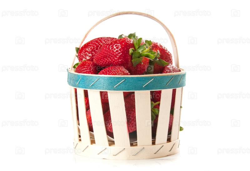 Клубника в корзине, изолированная на белом фоне