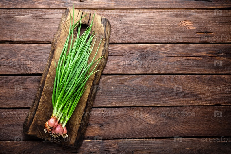 Зеленый лук на деревянной доске
