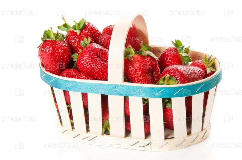 Клубника в корзине, изолированная на белом фоне