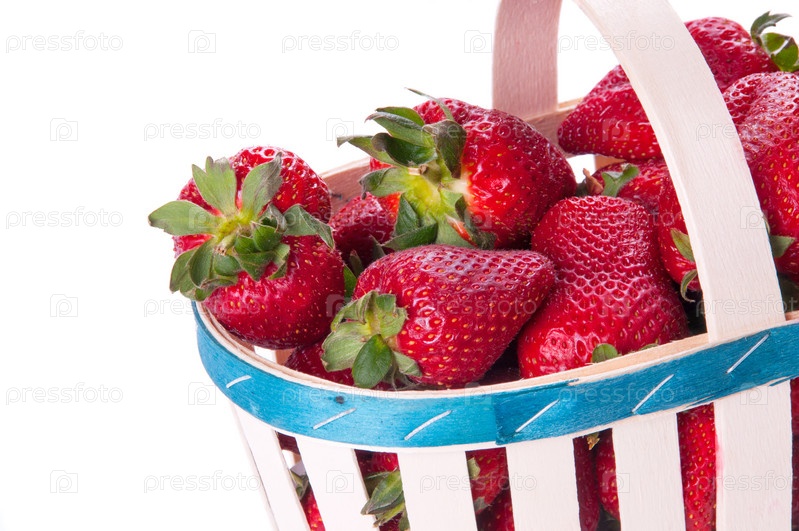Клубника в корзине, изолированная на белом фоне