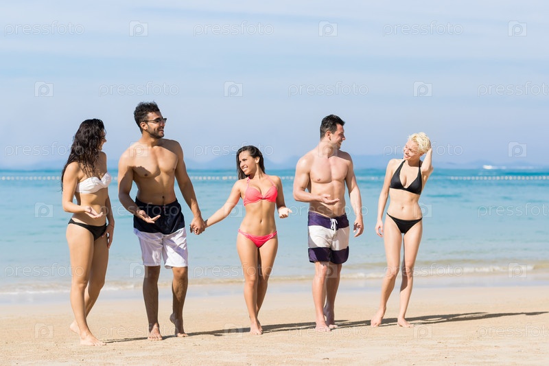 Группа молодых людей на пляже