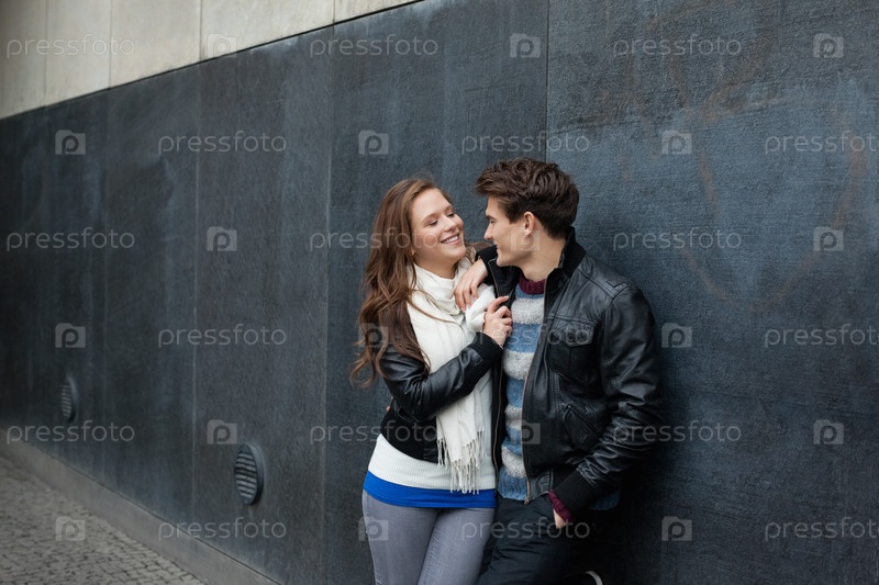 Романтическая пара, опирающаяся на стену