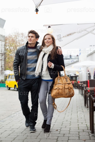 Пара, идущая вместе на тротуаре