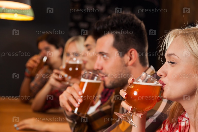 Группа молодых людей в баре