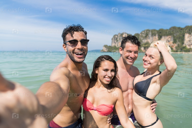 Группа молодых людей на пляже
