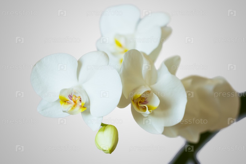 Белые орхидеи на сером фоне