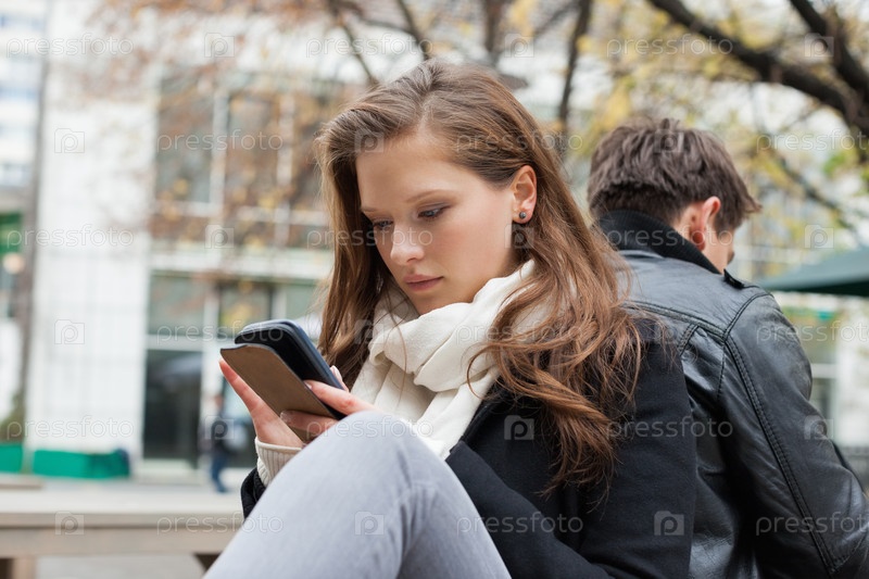 Пара с телефоном на улице