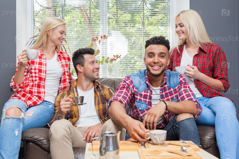 Молодые люди пьют кофе