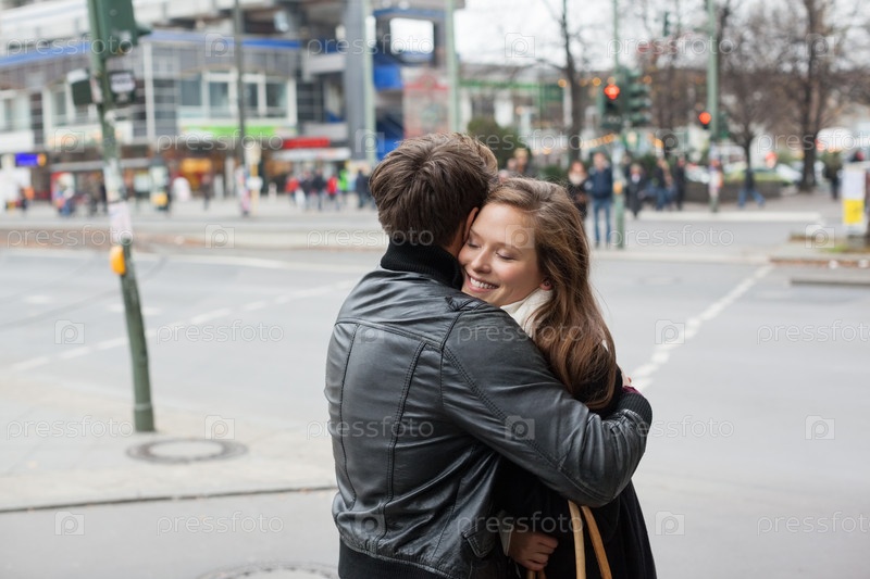 Пара обнимается на улице