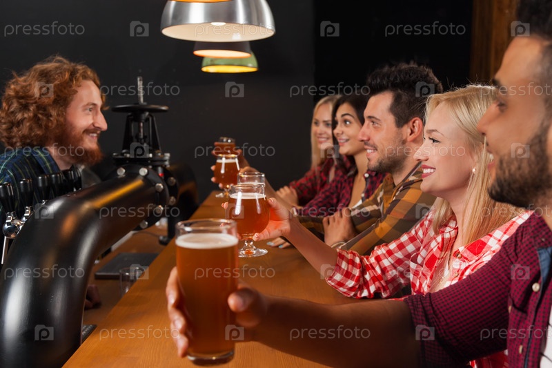 Группа молодых людей в баре