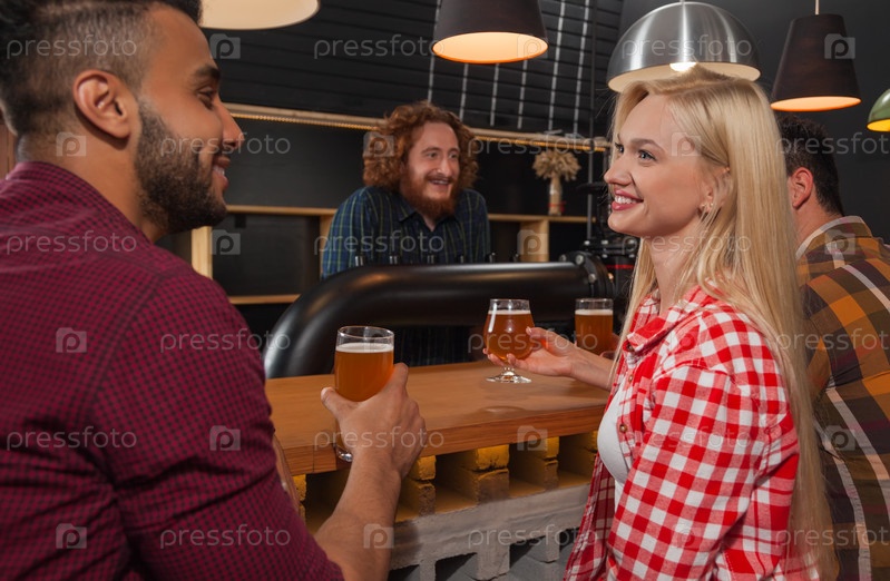 Группа молодых людей в баре