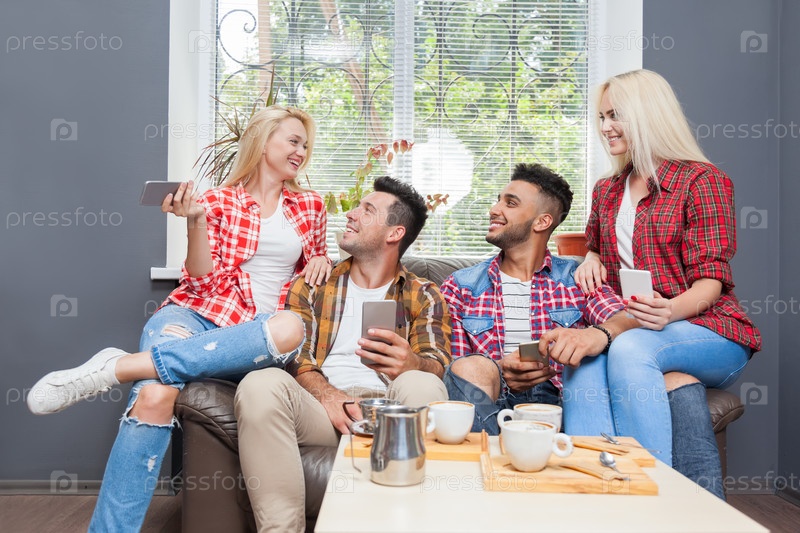 Молодые люди пьют кофе
