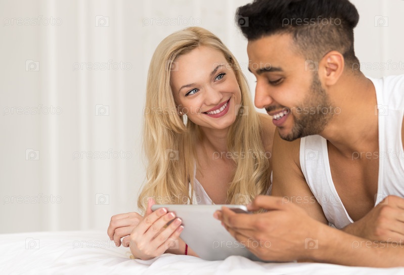 Молодая пара, лежа в постели