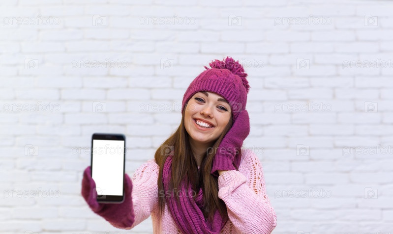 Привлекательная девушка в теплой одежде с телефоном