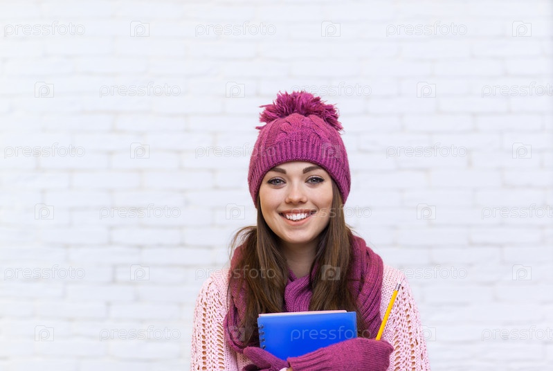 Привлекательная девушка в теплой одежде с телефоном