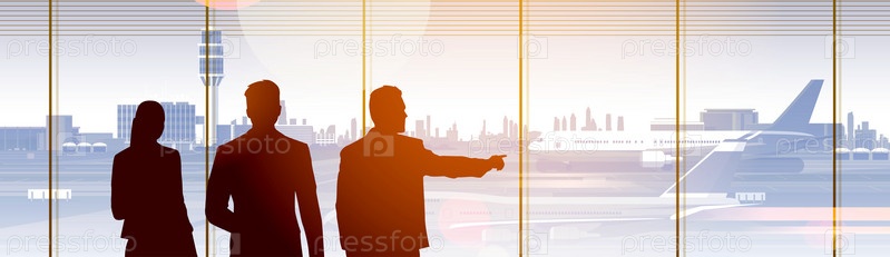 Силуэт людей в зале ожидания аэропорта