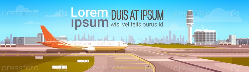 Терминал аэропорта со взлетной полосой и самолетом