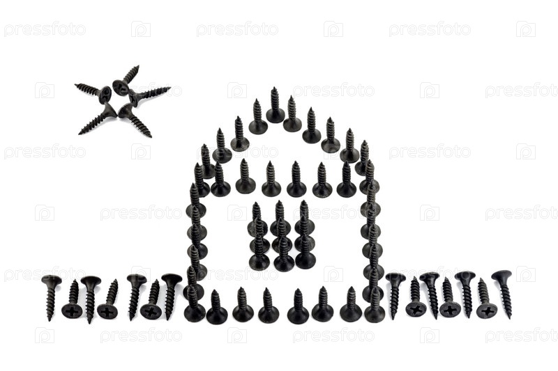 Дом с забором и солнцем из саморезов