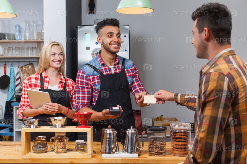 Бариста, обслуживающий клиента