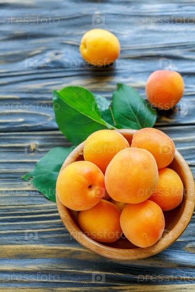 Спелые абрикосы в деревянной миске