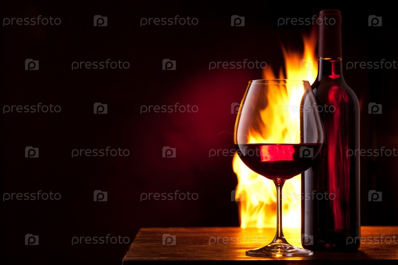 Красное вино. Концепция с огнем