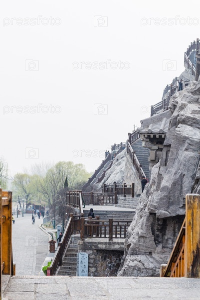 Туристы и резные склоны в гробнице Лонгмен