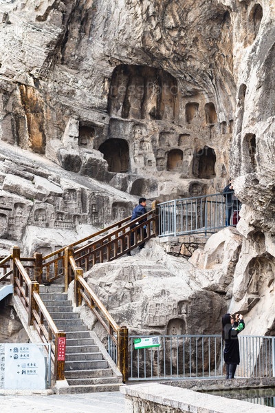 Туристы возле резных скал в горах Лонгмен
