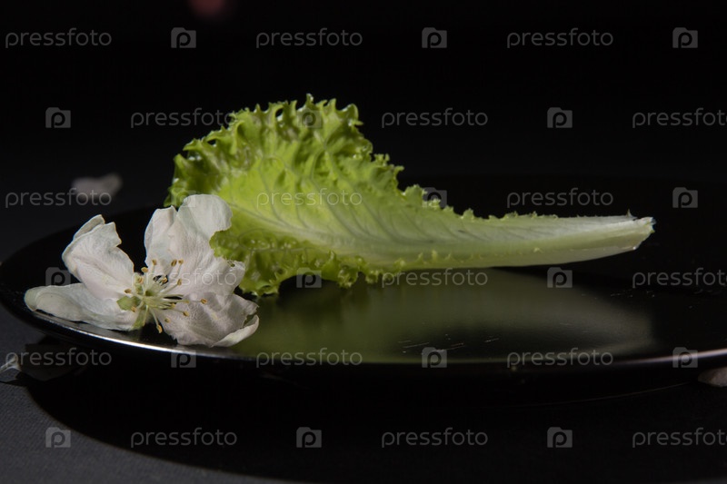 Свежий салат на черной тарелке