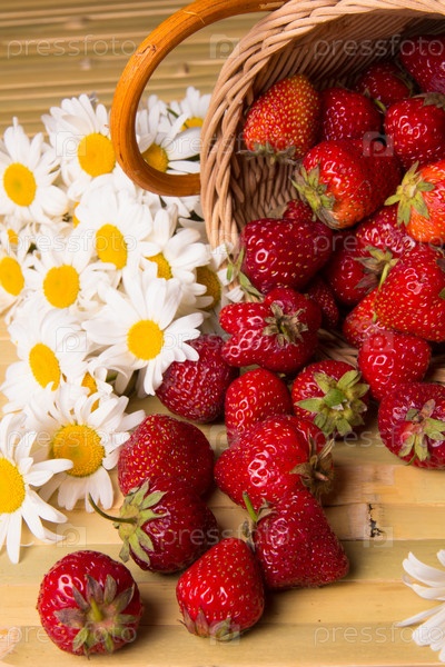 Свежая клубника и белые ромашки