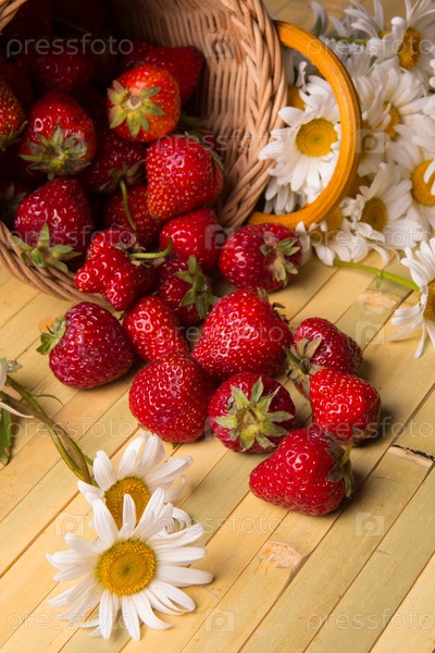 Свежая клубника и белые ромашки