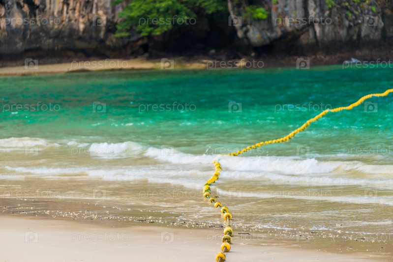 Плавающие буи на канате в море для обеспечения безопасности