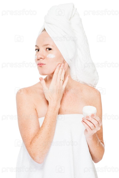 Женщина применяет увлажняющий крем на лице