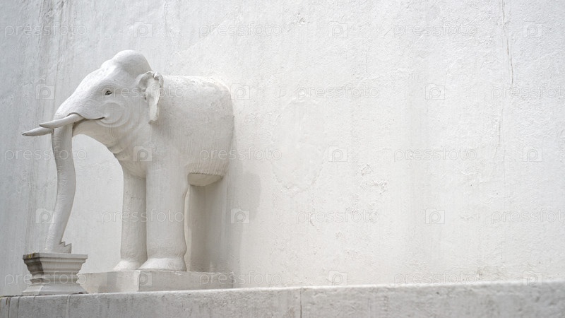 Половина слона в белой стене азиатского храма