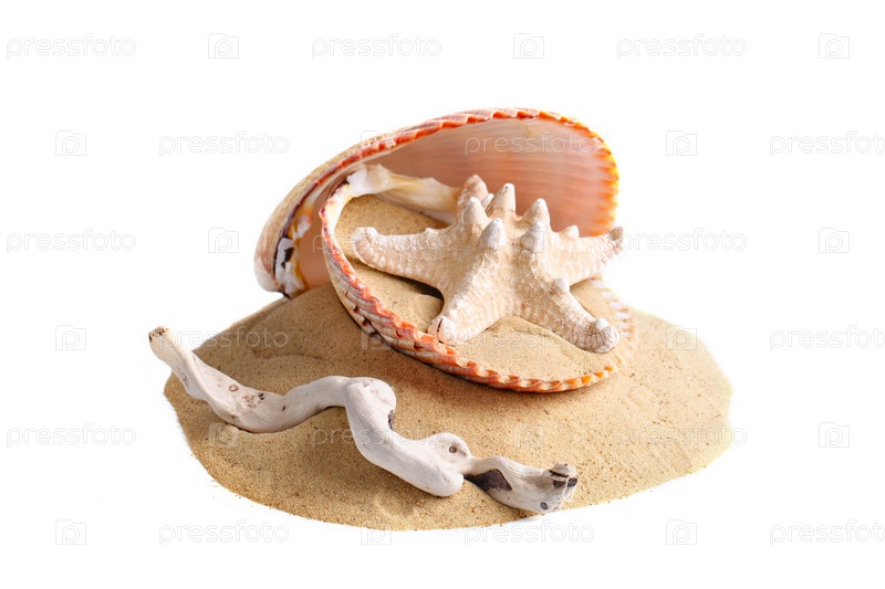 Морской песок и раковины. Летний отпуск