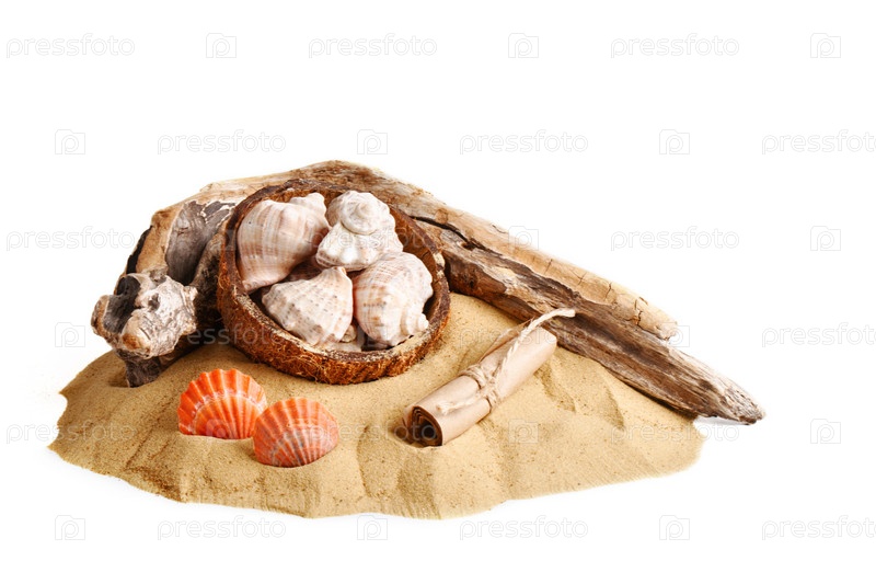 Морской песок и раковины. Летний отпуск