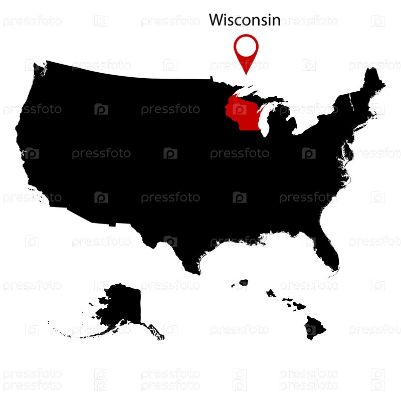 Карта штата Висконсин США на белом фоне
