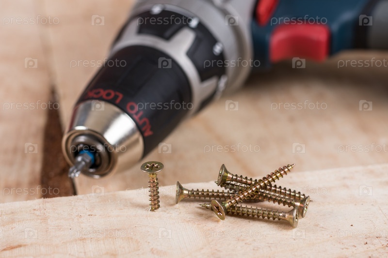 Металлический винт и дрель