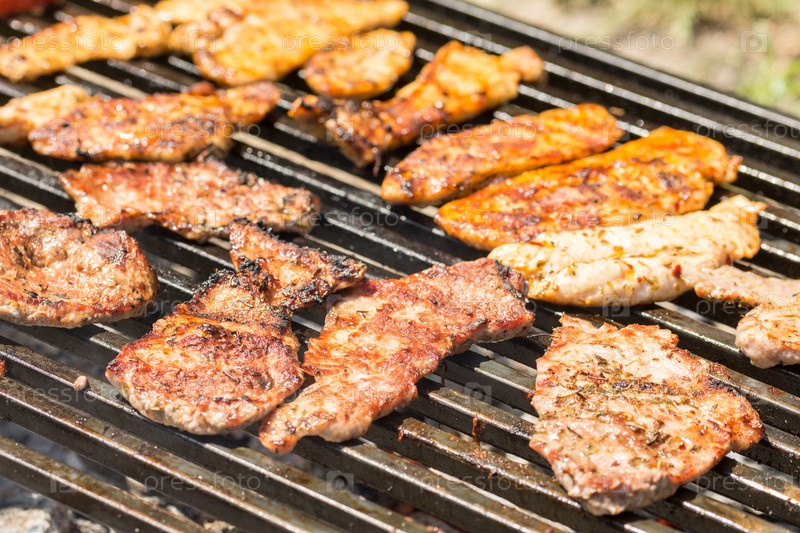 Жареная свинина и куриное мясо на гриле