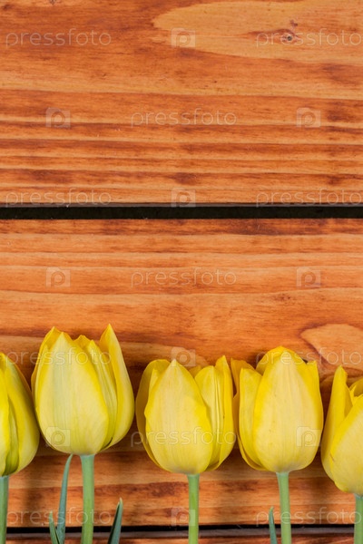 Деревянный фон с желтыми тюльпанами