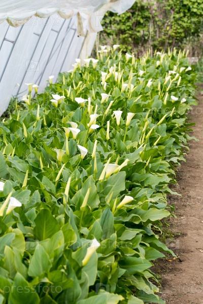 Каллы расцветают в теплице