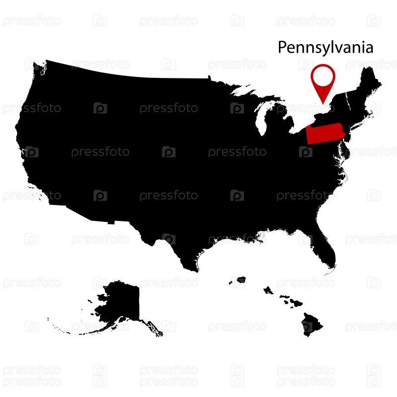 Карта американского штата Пенсильвания на белом фоне