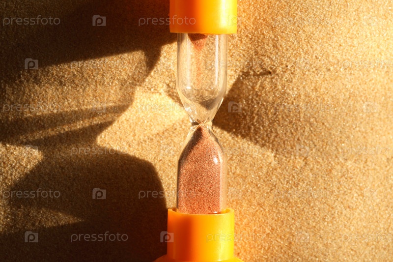 Понятие времени. Песочные часы на песке с местом для текста