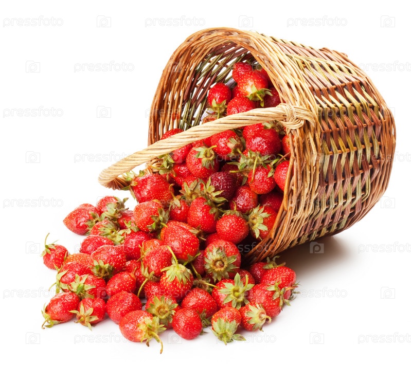 Свежая клубника в корзине на белом фоне