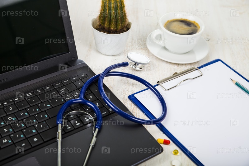 Рабочее место врача со стетоскопом