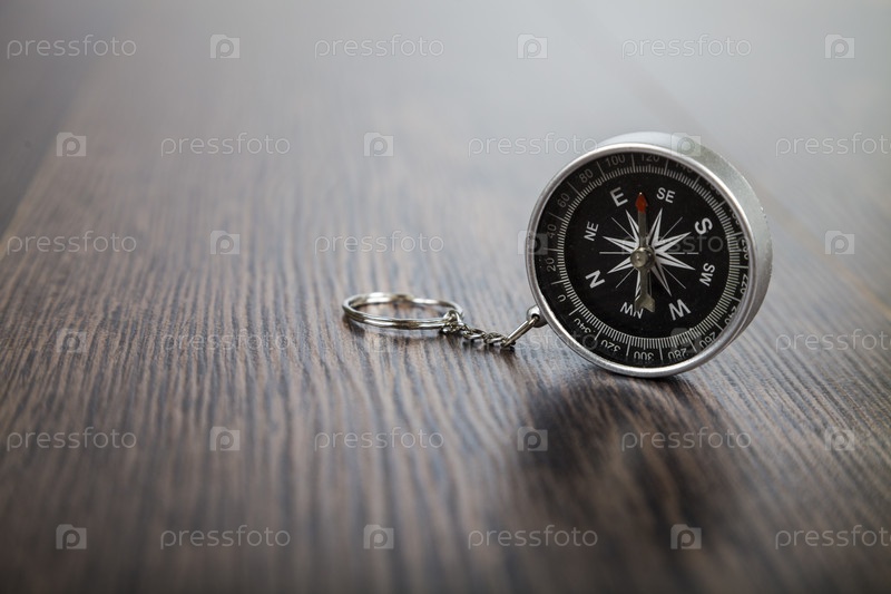 Компас на деревянном столе