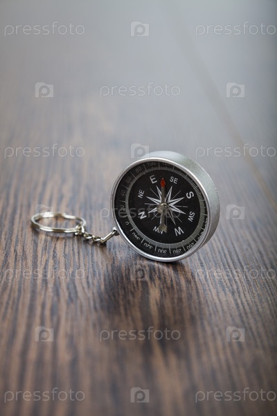 Компас на деревянном столе