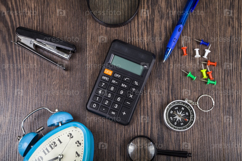 Компас, будильник, лупа и калькулятор