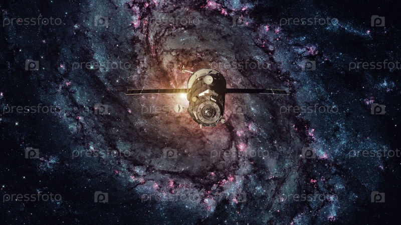 Космический корабль Прогресс, вращающийся вокруг спиральной галактики